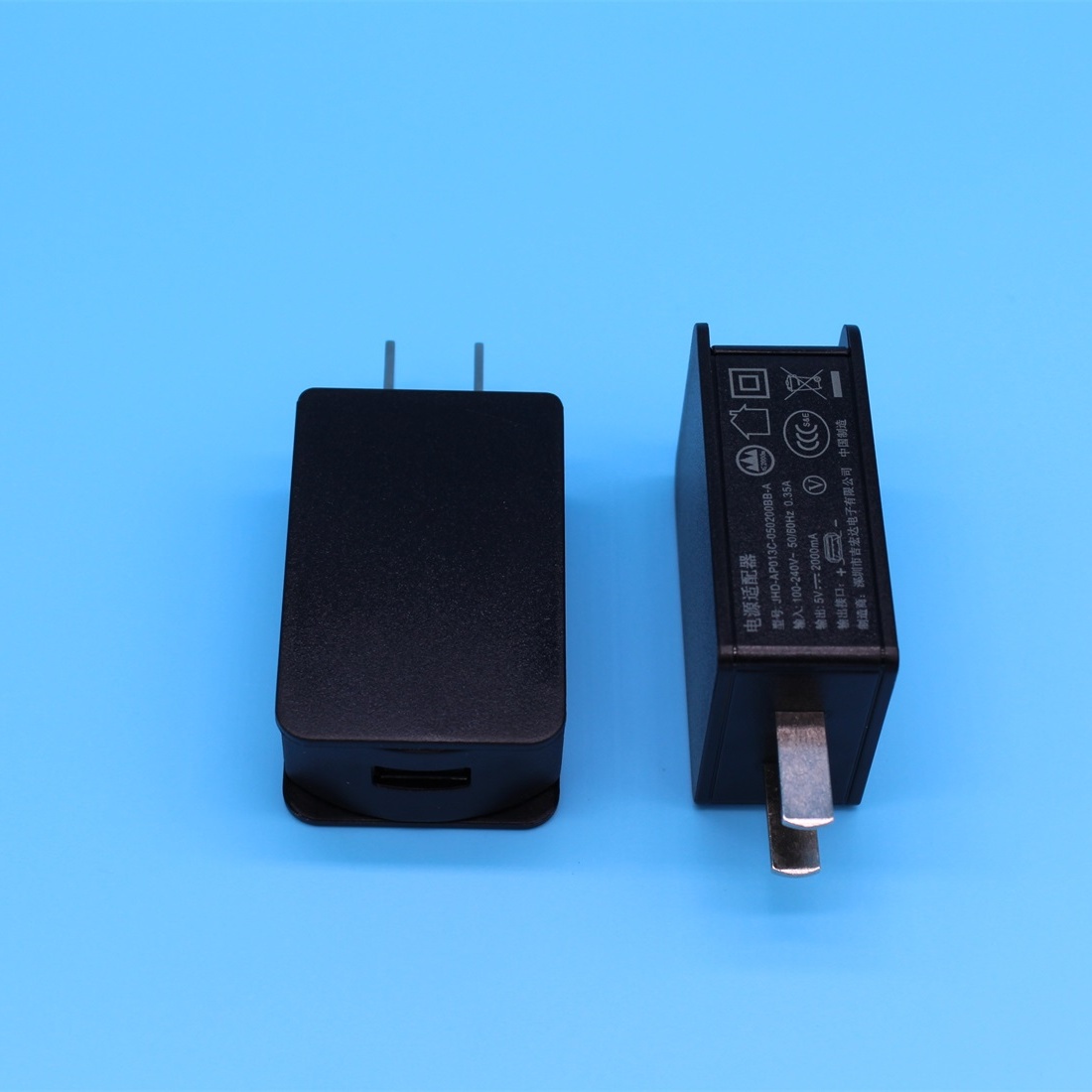 5V2A中标USB充电器,5V2A中规USB电源适配器。产品型号:JHD-AP013C-050200BB-A,输出电压5V,输出电流2A,最大输出功率13W,内置电子兼容防干扰线路,通过CB,PSE,UL,CUL,FCC,CE,GS-TV,CCC等认证,广泛应用于小家电、电子数码、IT通讯、安防监控、照明等。吉宏达USB充电头采用优质原材料,选用品牌元器件,追求高品质长寿命。5V2A白色电源适配器、5V2A USB电源适配器、5V2A充电器生产厂家。